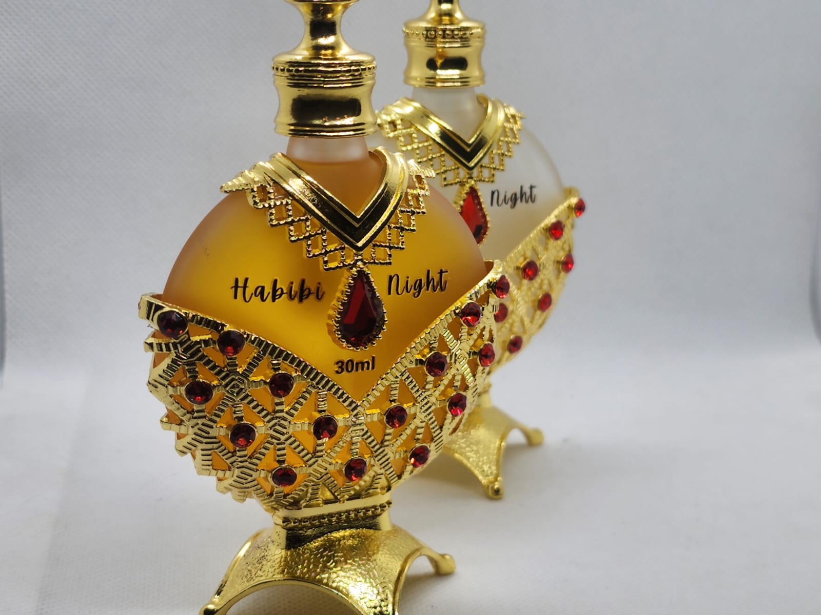 Habibi night collection box contains 30ml concentrated perfume oil alcohol free and 10ml perfume spray bottles with alcohol.